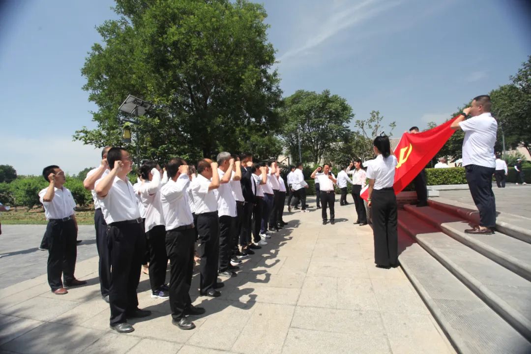 在習仲勳陵園,翠柏環繞,莊嚴肅穆,全體黨員麵向習仲勳雕塑鞠躬致意,深切緬懷先驅豐功偉績。在習仲勳紀念館雕像前,集團黨委書記周軍、集團董事長張紅軍、總裁王勇盛、副總裁商景楓、全體黨委委員及全體黨員重溫入黨誓詞,重憶入黨初心,重新接受黨性洗禮。