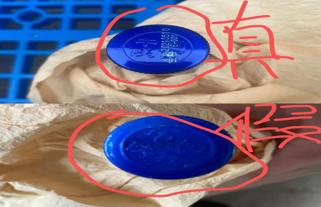 1、瓶蓋上的噴碼與我公司的不一致(我公司是激光噴碼,假冒偽劣產品是噴墨的)。
